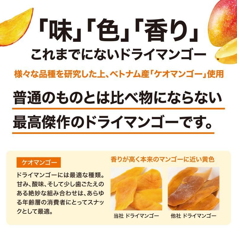 品種選びから研究を重ね、厳選したベトナム産ケオマンゴーを使用。大きめカットで濃厚な甘みともっちり食感が特徴!【博士のドライフルーツ 】